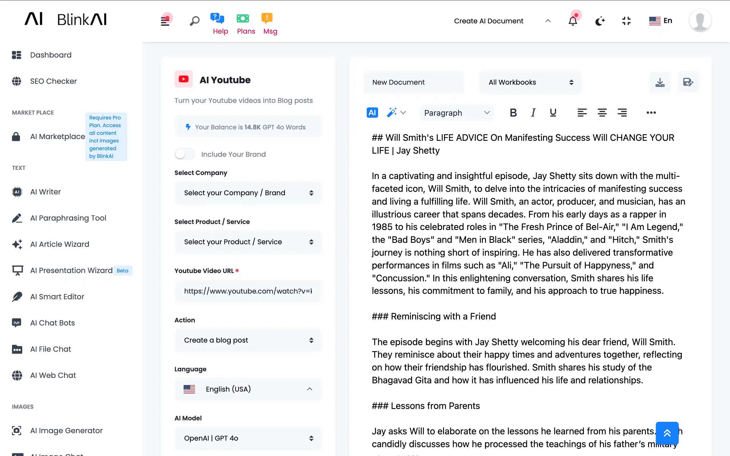 Generate AI Content with Blink AI