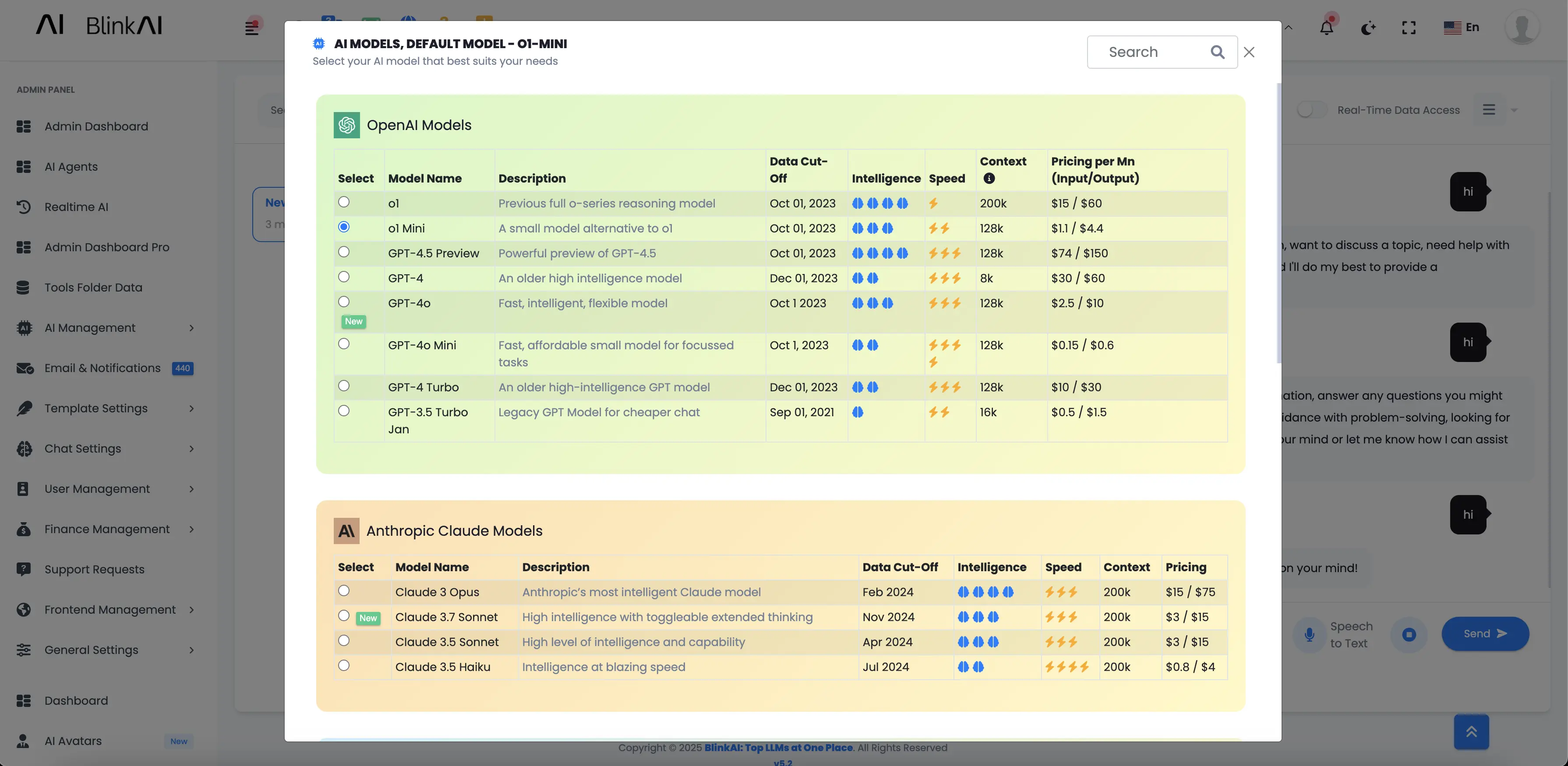 Switch to Your Preferrred AI Model while using Blink AI