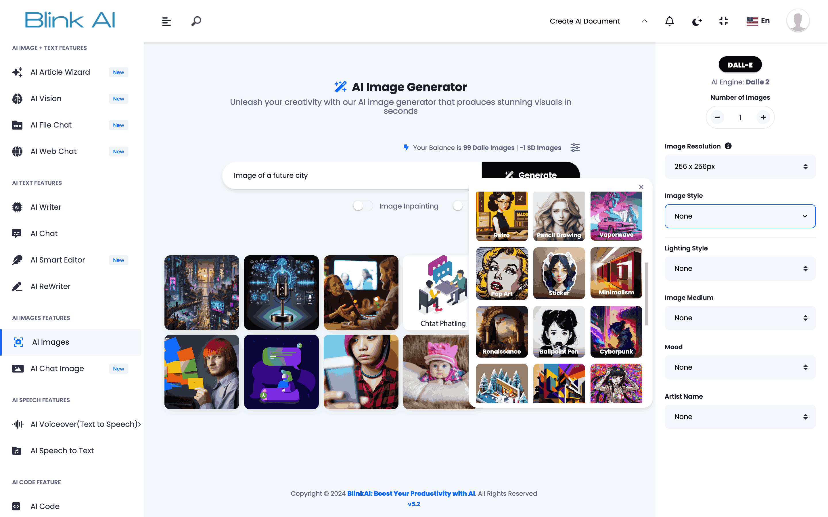 Bring your imagination to life with BlinkAI's advanced AI Image Generator.