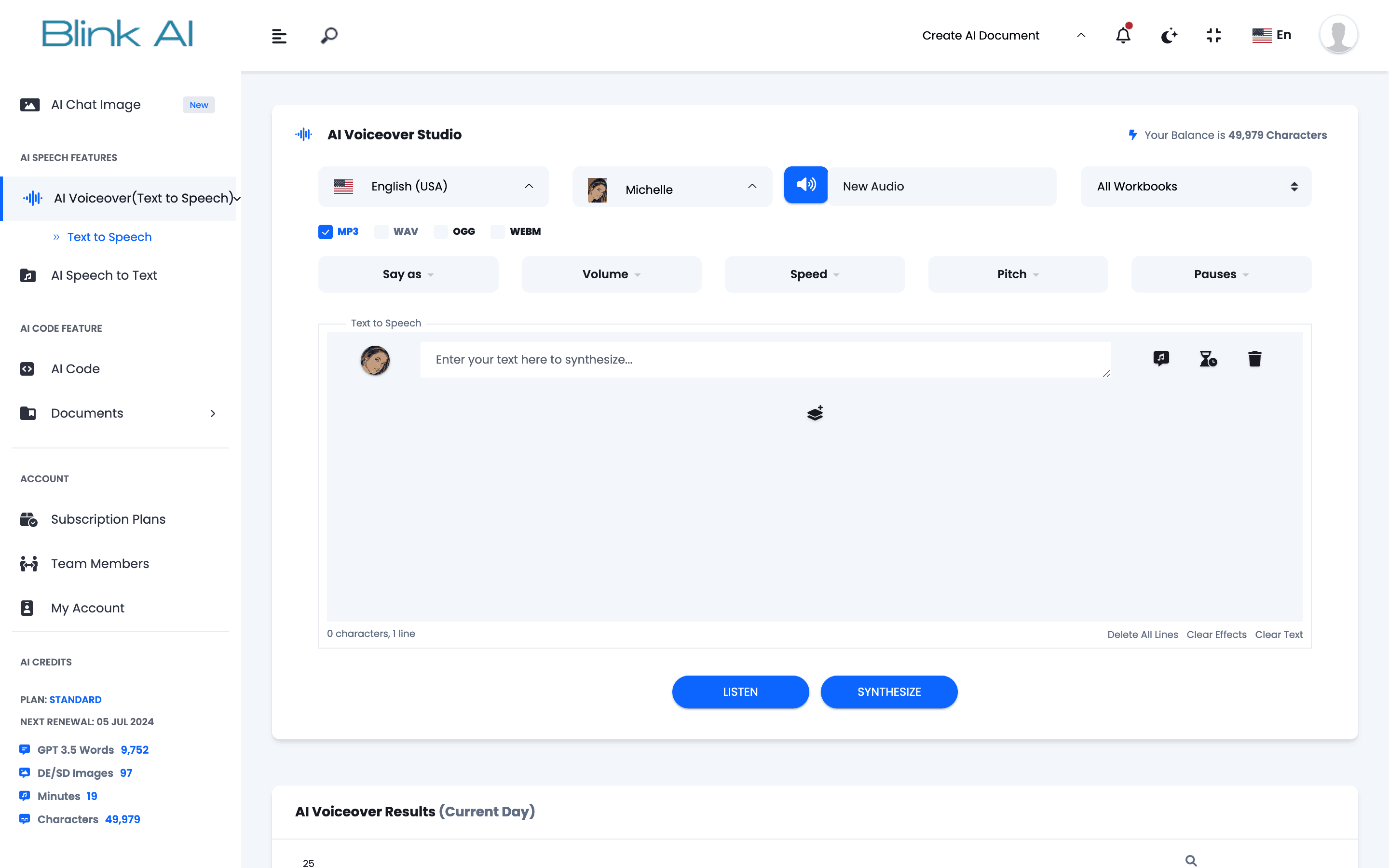 - Synthesize Text to Speech up to 100K characters