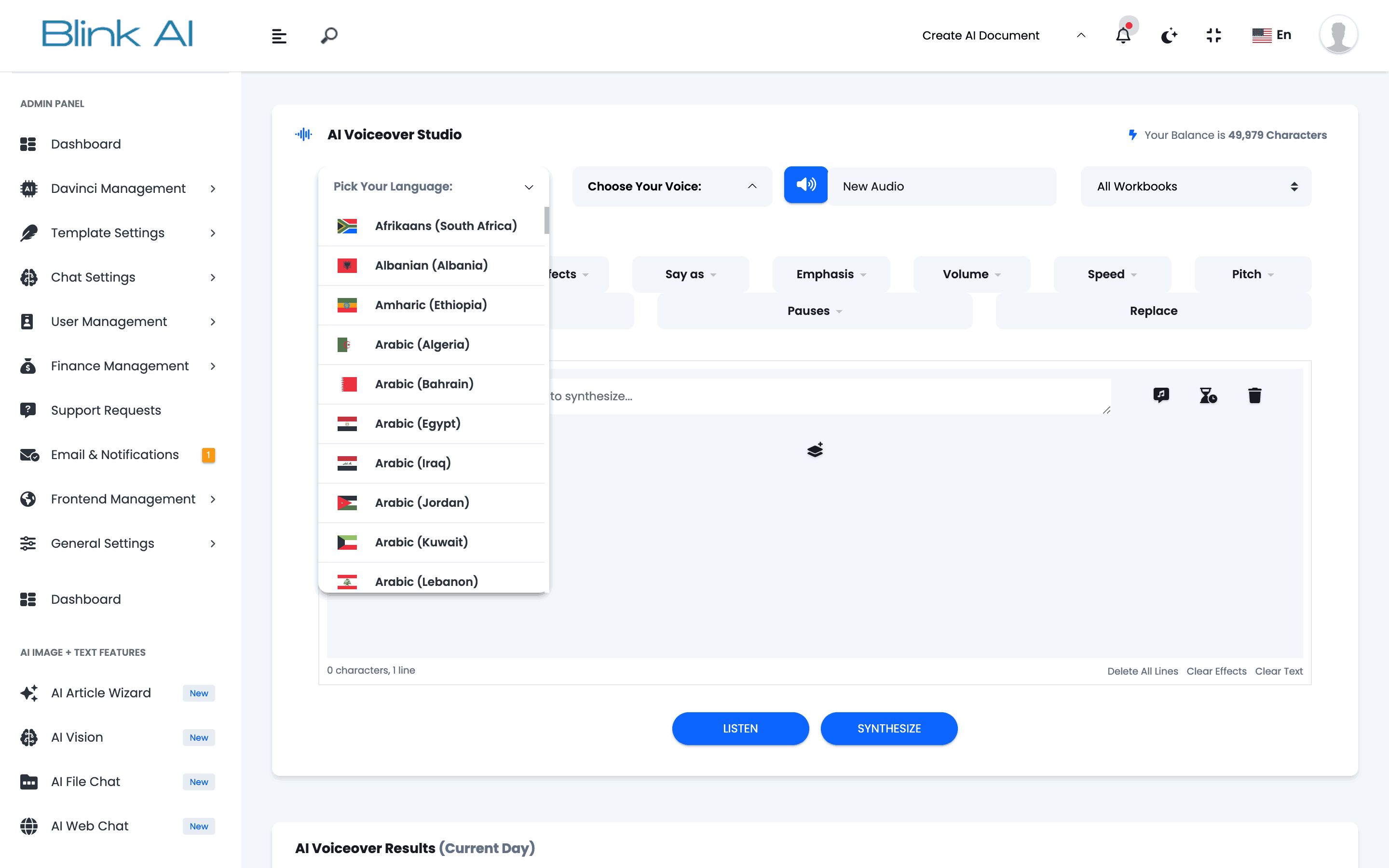 Select from more than 540+ AI neural voices and mix them within a single text synthesis task for a truly dynamic and versatile audio experience.