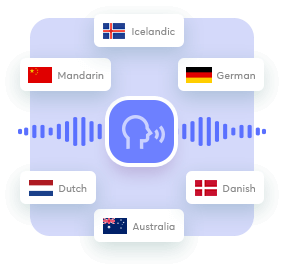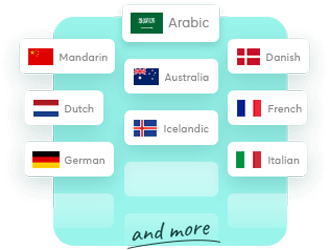 German, French, Dutch, Spanish, Portuguese, Italian, Arabic, Mandarin, Danish, English, Icelandic, Japanese, Korean, Norwegian, Polish, Romanian, Russian, Swedish, Turkish, Welsh, etc