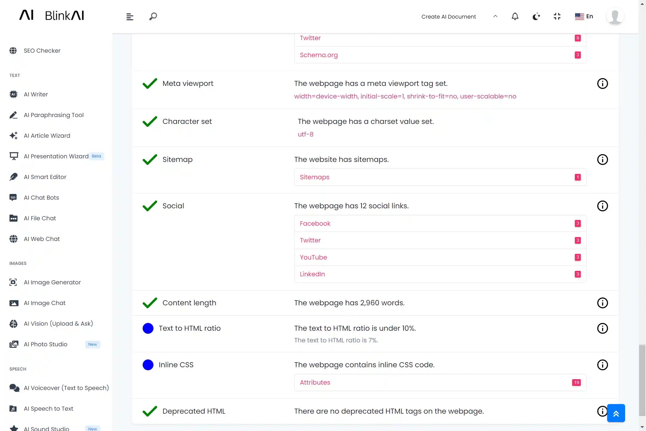 Imrove ranking of your website with BlinkAI's SEO Checker